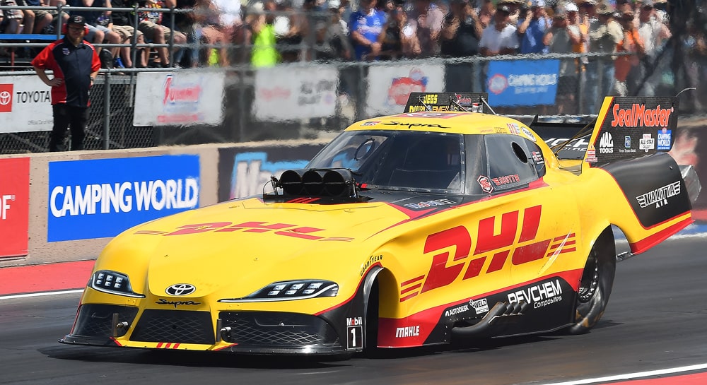 Hagan now has 45 points on his fellow three-time champ, followed by Denver runner-up Alexis DeJoria’s GR Supra, Robert Hight in John Force Racing’s Chevrolet Camaro SS, Chad Green, Bob Tasca III and Tim Wilkerson in their Ford Mustang floppers, 16-time champ John Force’s Camaro, J.R. Todd’s Kalitta Motorsports Toyota GR Supra and Cruz Pedregon in 10th place, racing his self-entered Dodge Charger SRT Hellcat, 344 points behind Hagan.