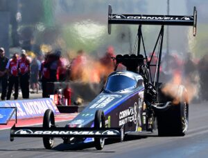 Kalitta Racing’s Doug Kalitta is in the dragster catbird seat: he’s in first place, has been in four consecutive Countdown to the Championship final rounds, winning two of those races consecutively. That there have been four playoff races thus far shows how strong the Kalitta offense is playing. But as Kalitta reminisced, “I’ve finished second seven times, so for me, you never count your chickens until they’re hatched. We still have two races to go,” Kalitta reminded. “It’s great to have a lead, but would certainly be better if we could get far enough ahead so nobody can catch us – that’s the goal!”