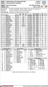 Josef Newgarden made his way from the back row to the top 10 before fuel pressure issues with his Team Penske Chevy forced the two-time Indy 500 champ to retire right after his fifth pit stop on the 132nd lap. He’d made up 26 positions after starting 32nd, only to be parked early, ending his day. 2014 Indy 500 winner Ryan Hunter-Reay, making his second straight appearance with Dreyer & Reinbold/Cusick Motorsports led 48 laps, second only to two-time winner Takuma Sato. RHR’s Chevy engine shut off after his lap 169 final pit stop and would not restart properly. Sato, working with Rahal Letterman Lanigan Racing, also had brake issues in the pits and had an 11th place result.