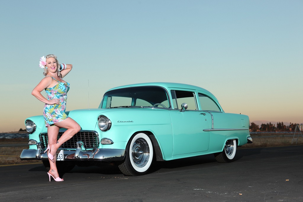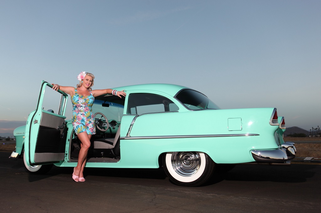 With her heart in the car scene, petrol running through her blood and a penchant for pinup style, Dixie Deluxx is a hotrod pinup from the little land of New Zealand. Her passion for cars started at a young age, and once she finished school she went on to work in the automotive mechanic industry. With her hands behind the wheel of a '59 Parkwood, she attends shows and cruises as a weekend regular.