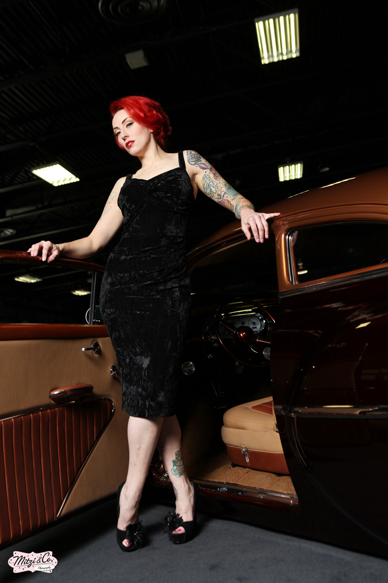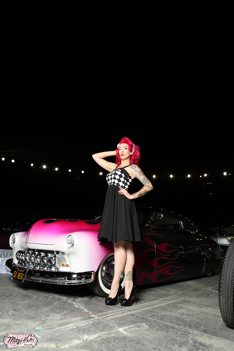 Hi there! My name is Dorothy Von Fink, your pinstriping/pinup girl! Nothing gets me going more than the sound of a V8 engine roaring and a shot of good tequila. Hot rods, one shot and high heels are my weakness. I wrench on cars with the boys one minute and then play dress up with the girls the next. When I have spare time, I love visiting my favorite vintage shops in the Bay Area. I also collect records and Lucite purses. I definitely know my way around a kitchen and I'm always dreaming up new recipes to whip up! If you're looking for a good ol' fashion gal, look no further, because here I am! Let's burn rubber! Xoxo, Dorothy