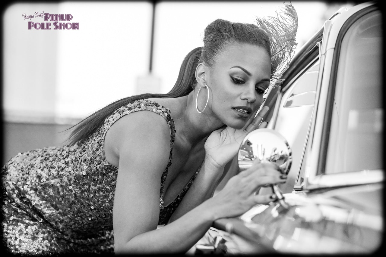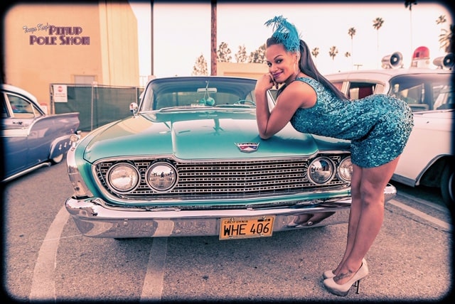 This week’s Pinup Pole Show Pinup of the Week is the confident Candace Cane. You can see her here with one of the company’s favorite cars (we still can’t find its owner!), a 1960 Starliner. These gorgeous color and black and white photos were shot by Shane Karns at Tonya Kay’s Pinup Pole Show. Let’s talk to Candace about her newest classic truck acquisition and how her father connected with her through his love of cars.