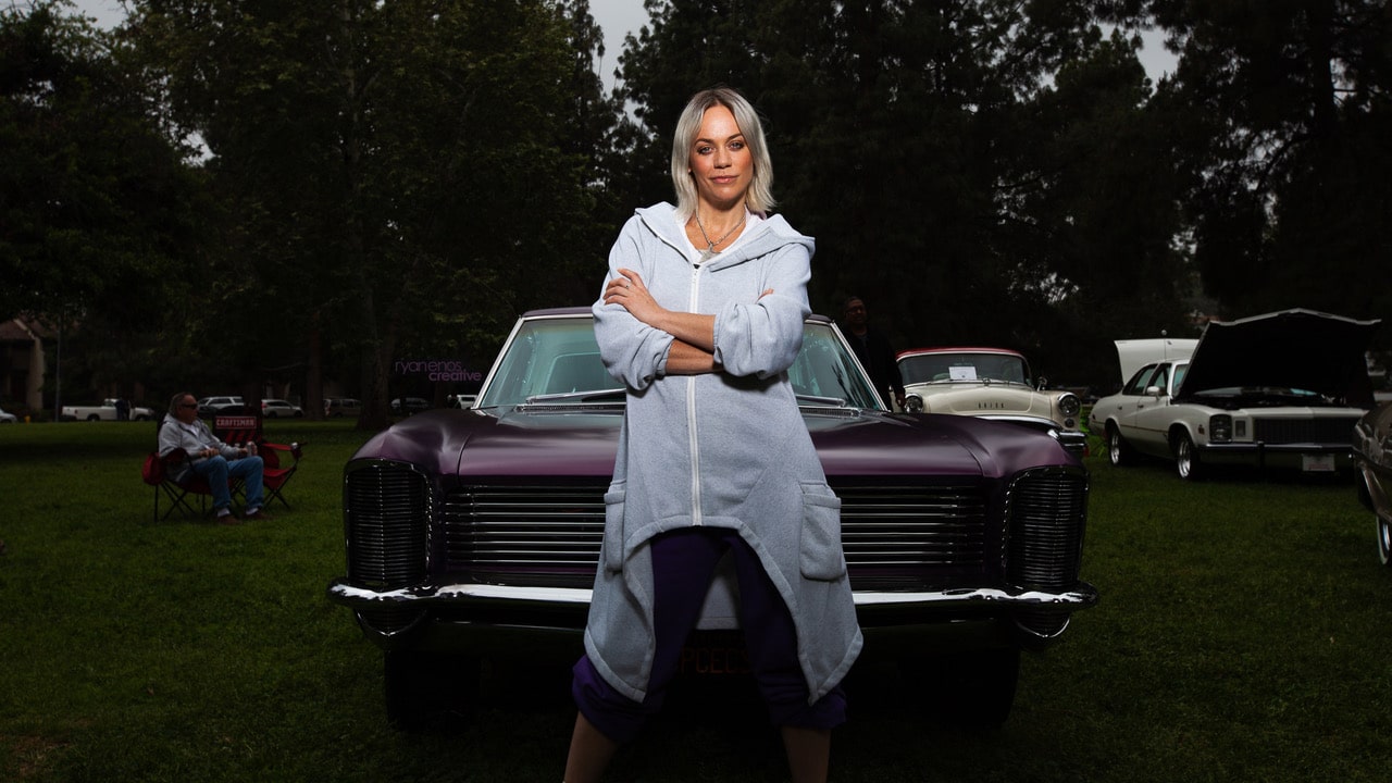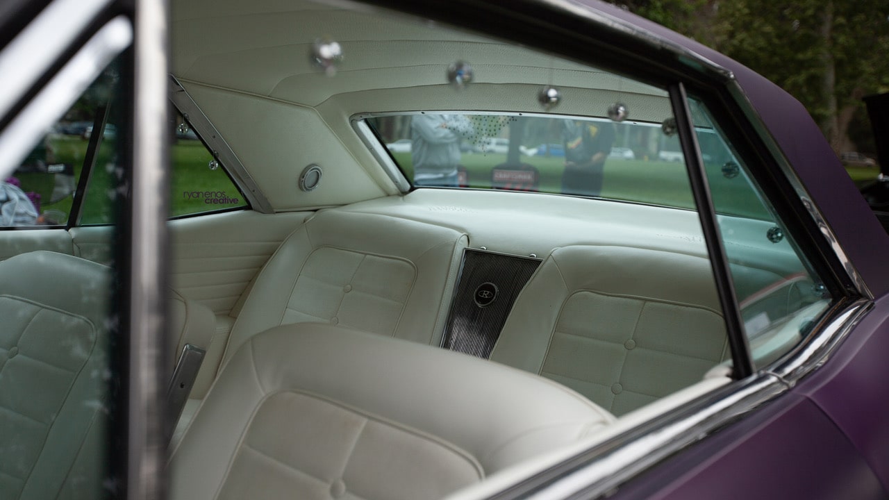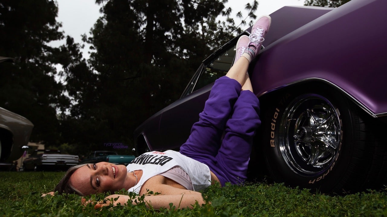 Last week I took my 1965 Buick Riviera, the Grape Space Coaster, to the All GM Car Show in Woodland Hills, Calif. About 200 cars were in attendance, mostly stock, separated by make: Buick, Oldsmobile, Cadillac, Pontiac, Chevy and a new GM Performance section. One of Pinup Pole Show's favorite photographers, my friend, Ryan Enos, brought his camera to the show and after I got a 20 min beauty nap in on the grass, Ryan and I had some fun right there amongst all the classics. Lights, camera, action! You’ll notice these photos aren’t in the usual Pinup Pole Show retro styling, and that’s because we both wanted to capture a more owner-and-car vibe than model-and-car aesthetic. Plus my purple sweats and Vans just matched so well. That makes this week’s Pinup Pole Show Pinup of the Week me, Tonya Kay, with my 1965 Buick Riviera, the Grape Space Coaster, photographed by Ryan Enos at the All GM Car Show. Let’s talk to Ryan, the photographer himself:
