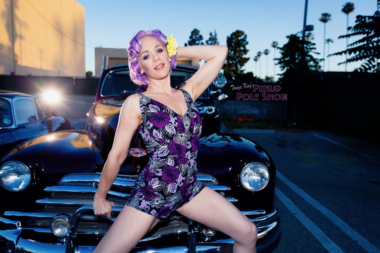 Tonya Kay is a brutally elegant film actress, burlesque headliner, raw vegan renegade and producer of Tonya Kay’s Pinup Pole Show and classic car cruise-in. You’ve seen her hosting Motor Spins, performing on Broadway (STOMP, De La Guarda) and in blockbuster films (Lone Ranger, Muppets Movie). Her pinup and modeling work has been published in magazines, calendars and comic books like Car Kulture Deluxe, DrivenWorld, Grease Inc, Superfly Auto, The SpeedGirls and Garage Latino. And her viscous classic hot rod, the Grape Space Coaster, is even more famous than she is standing out on Discovery’s "Sticker Shock," Speed TV’s "My Ride Rules" and music videos.
