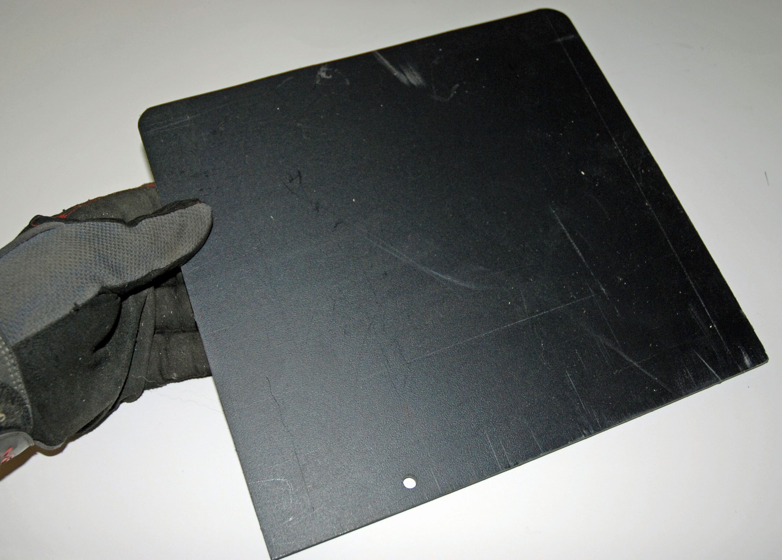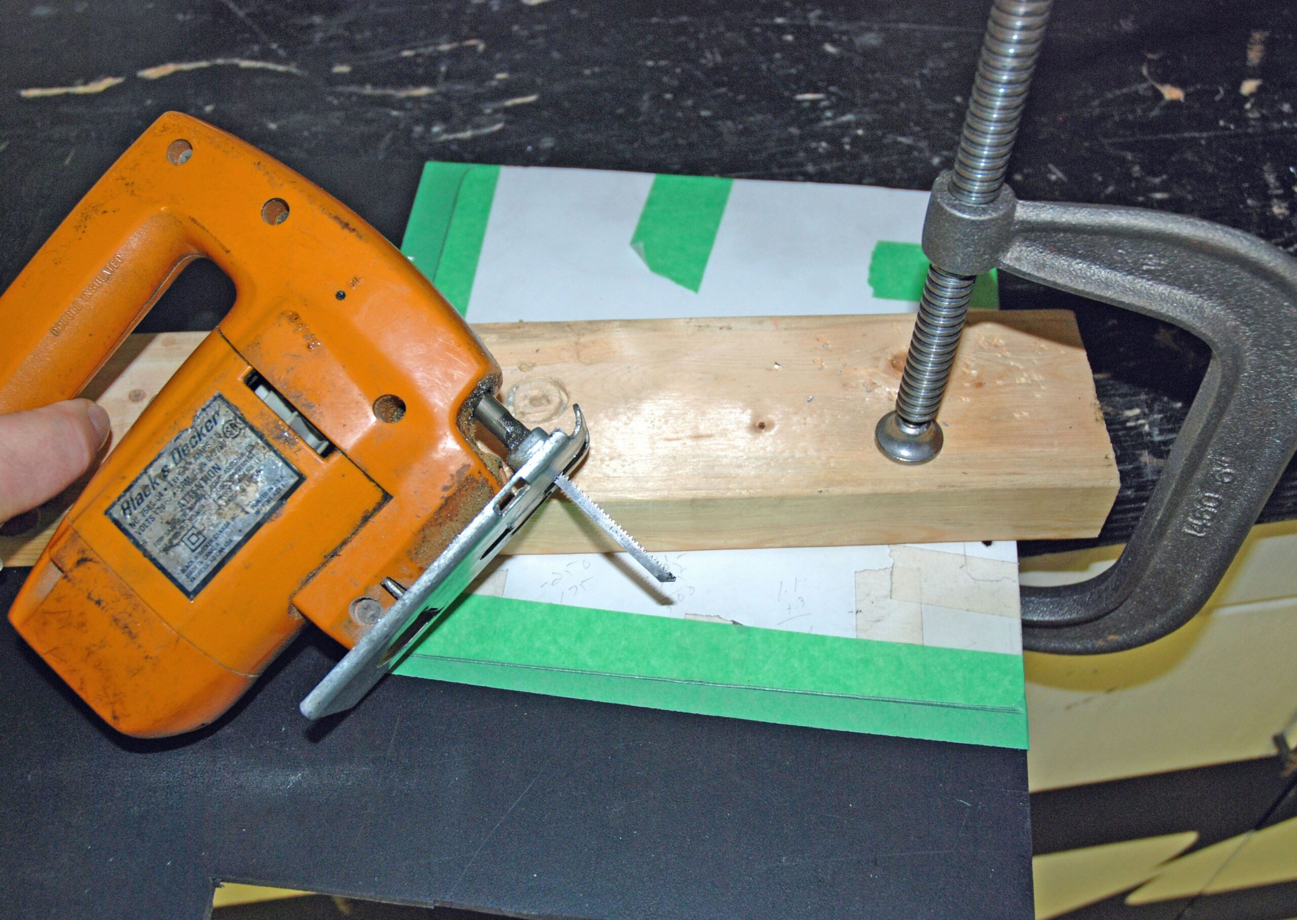 Once you’re satisfied with the fit, you can transfer the pattern to the Delrin. Although there are a number of ways to do this, for my purposes (and likely yours too), simply attach the pattern directly to the plastic sheet. Here are some photos of how I do it: