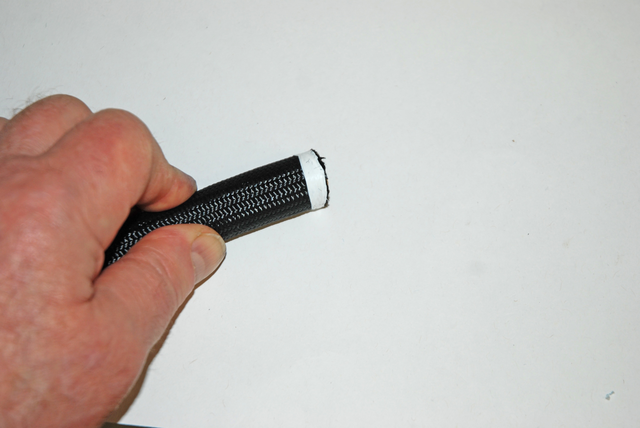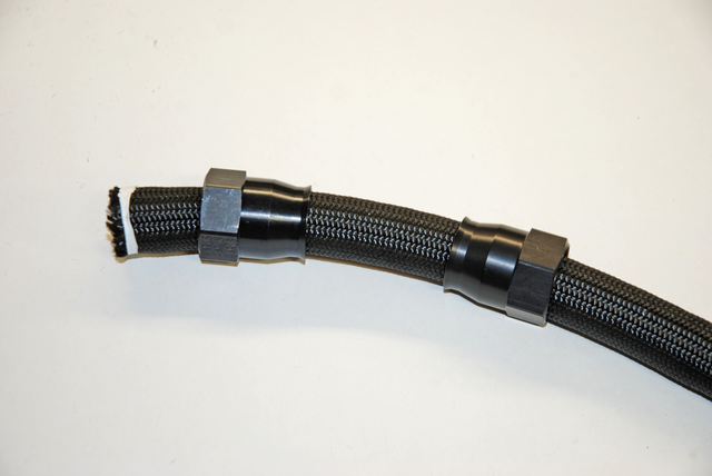 Fair enough. But how does it go together? There are a couple of ways to assemble this type of hose – by hand and by machine. For our purposes here, we’re using the lightest fabric braided UltraPro hose coupled with Earl’s matching UltraPro hose ends. This type of hose can be assembled at home with common tools. Here’s how it goes together (we’ll finish up with the hose next issue):