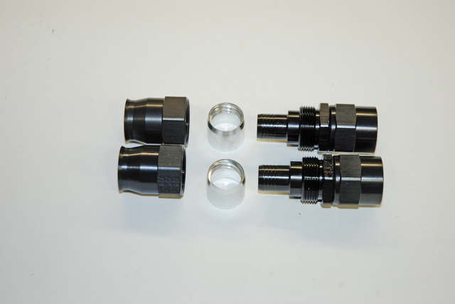 The matching UltraPro Series hose ends from Earl’s are manufactured from premium high-strength 2024-T8 aluminum and fitted with fluoroelastomer internal seals which are chemically resistant to all known fuels, oils and coolants. They feature brazed bent tubes for increased strength, and all unnecessary weight has been eliminated from UltraPro components. The result is a very lightweight hose and fitting package (the stainless braided UltraPro is up to 37% lighter than comparable stainless braided hose, and the Polyester Braided hose shown here is a whopping 67% lighter than comparable rubber lined stainless braided hose). The bottom line here is that the weight reduction alone makes it perfect for modern racecars.