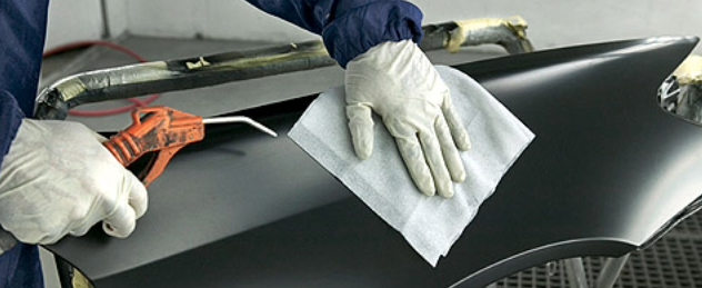Cleaning panels for paint is a big step to achieve success and clean paint work. If there’s a contaminant such as dirt, dust, grease or over spray on a new part, that flaw will show up in the final results. Any dirt or dust that finds its way into your paint will need to be sanded and buffed once the clear coat has cured. In an auto body shop, “denibbing” paintwork is a nightmare for any painter. Simply put, this process takes a lot of time, and time is one thing all auto body painters don’t have. To get the best result, make sure the panel you’re painting is properly cleaned with wax and grease remover.