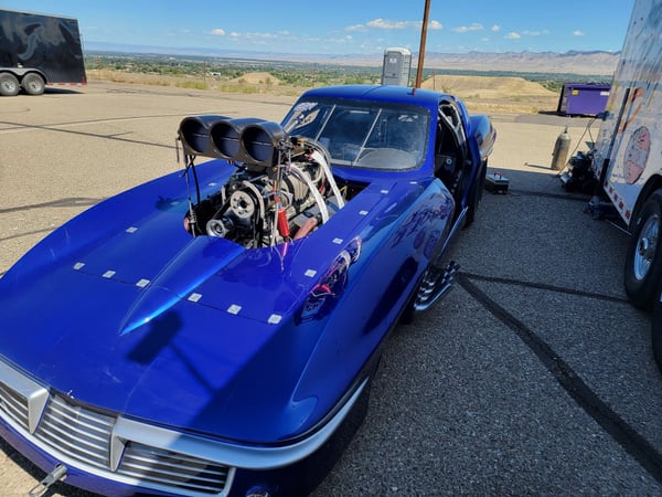 This a a classic 1963 split window Corvette Harry's Glas body. The chassis is 6.0 certified. Built in 2018, this care features a 540 blown injected alcohol engine with a Merlin block and Dart heads. The blower is a Littlefield 1471 blower. The transmission is a Abuzi 2 speed Powerglide. The rear end is a 9 inch Ford RJ Racecars fabricated housing. The car has a full fire system. Datalogging by Racepack. MSD Powergrid timing computer. This is a complete race car that is ready to go to the track and be competitive in Top Sportsman. Will also consider selling a rolling chassis for $45,000.