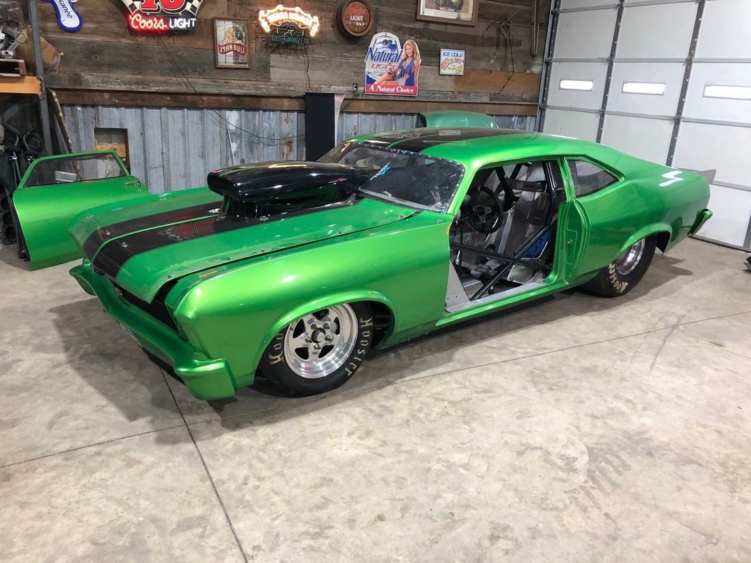 1970 Nova that won Street outlaws Vegas IN 2020 televised on Discovery channel earning $16,000 purse in a field of 32 cars. Aluminum 458 cu in SBC. Tube frame car runs the 1/8 mile at 145 mph on C16 race gas and nitrous.new $7000 rebuild on motor new pistons rods etc. 2350 lb tube frame car with chopped top. MSG ignition with crank trigger. Edlebrock 18 degree heads.