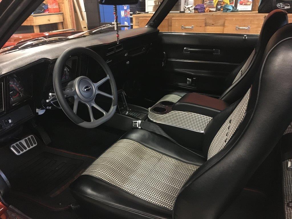 496 inch Big Block TH400 Traded a garage door for the car, it needed a lot of work. Stripped it down to the shell and replaced or refurbished everything. It has 4 link rear suspension, coilovers, 4 wheel disc brakes, power windows, air conditioning, serpentine belt system, factory gauges, deluxe interior, original color Cordovan Maroon with hockey stick stripe