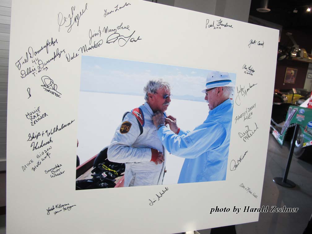 Now don’t get the wrong idea, as I mean no disrespect, but when I go I want a Celebration of Life like Sam Wheeler had. The weather was wonderful, the location perfect, and a host of friends and family filled the place to capacity, laughing, telling stories, and enjoying each others company. It was an afternoon well spent, reminiscing about yesterdays and those who leave us too early. All in all, it was a fitting tribute to honor Sam Burr Wheeler, who tragically lost his life at the Bonneville Salt Flats during testing on the EZ Hook/Parts Unlimited streamliner, which he hoped would set a new world record at the upcoming Speedweek races.