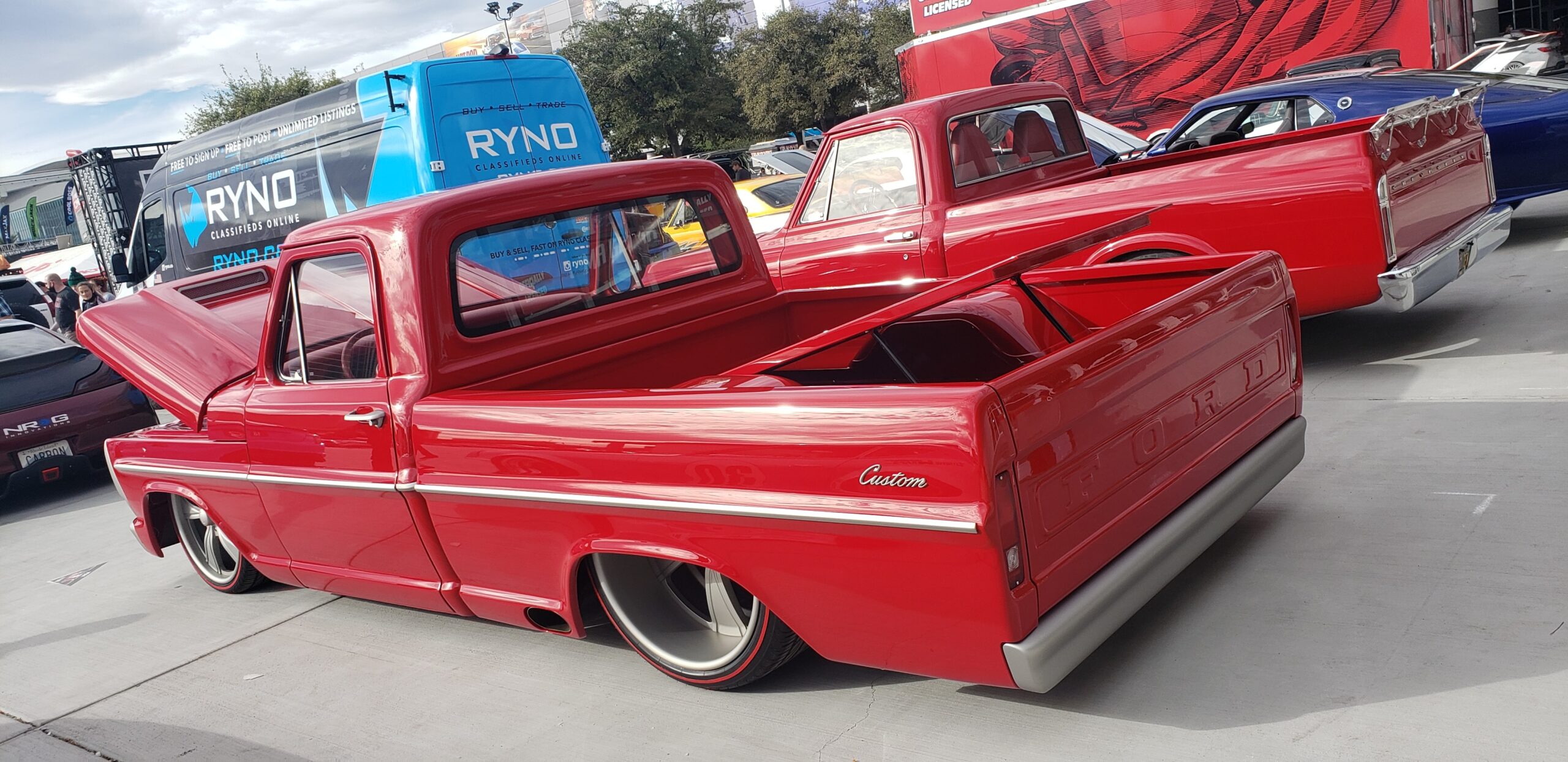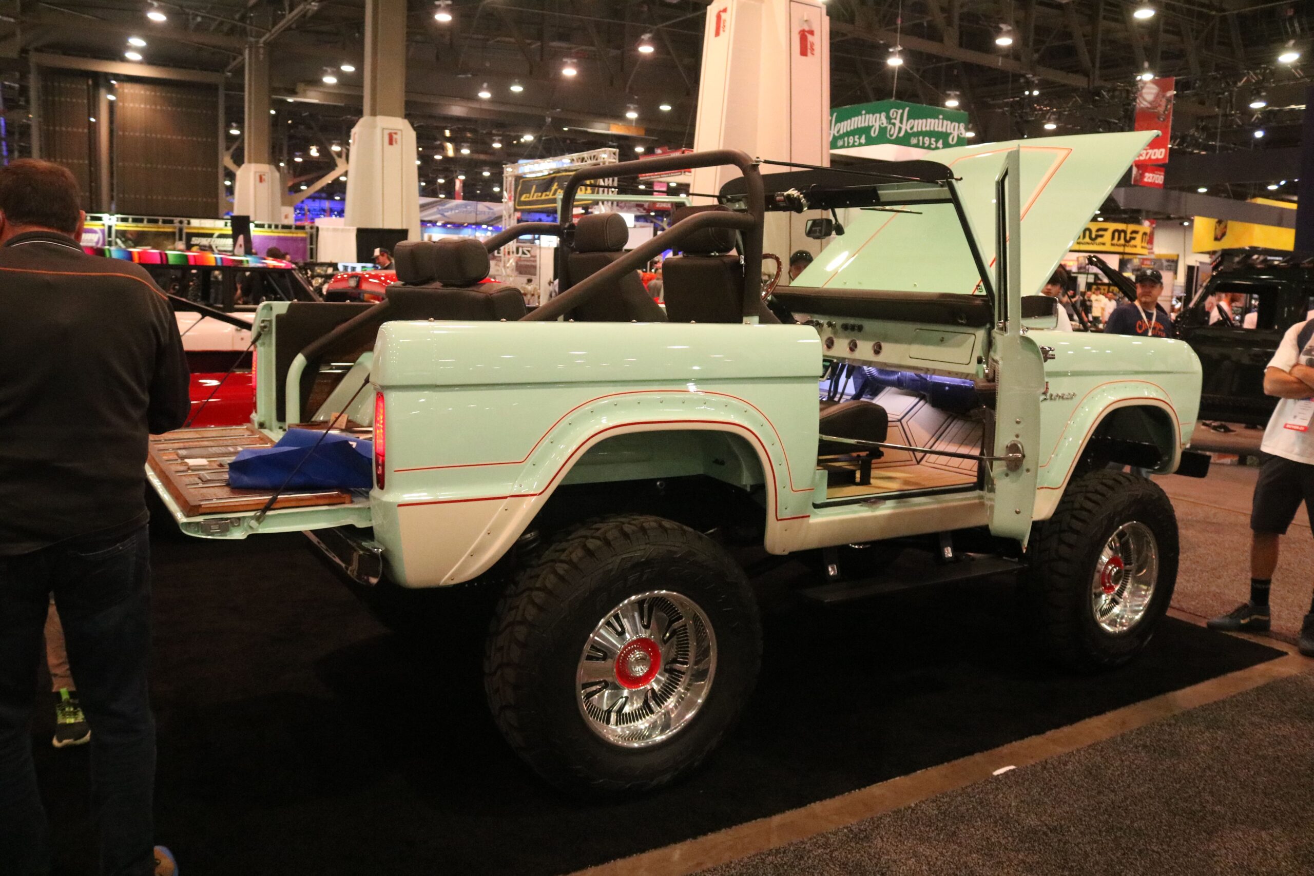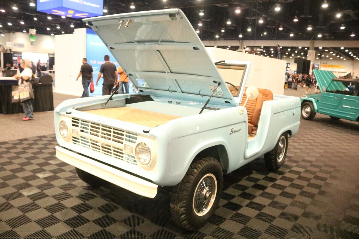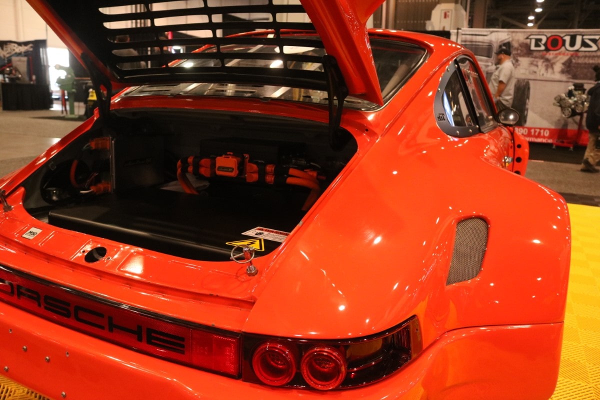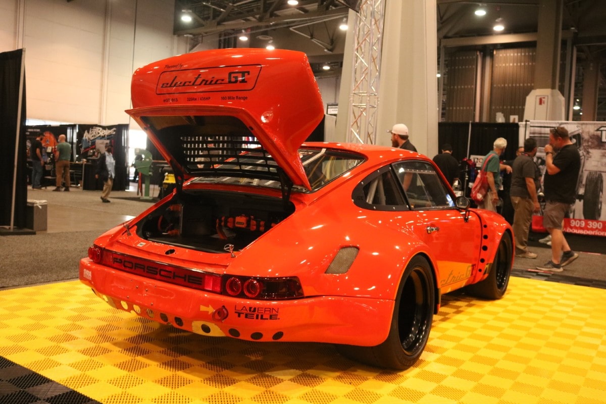 SEMA is traditionally a place to see the newest and coolest builds, as well as the place to get a sense of new trends in the aftermarket and while Off-Road continues to reign supreme, this year the alternate powered vehicle build was definitely front and center. It's not surprise, of course. Ford's 280 hp Eluminator electric crate engine will retail for $3900 and is reportedly already sold out. Lifted from the Mach-E, the electric powerplant got a fitting home at SEMA in a classic 1978 F-100 pickup. But it's not the only EV powered hot rod, vintage vehicle, or cool car on display at SEMA. An EV powered 911, a Legacy EV powered Gateway Bronco, and some other rockin' rods showed that while electric may still taste a little weird on the lips of the auto enthusiast, builders are embracing the power and torque of the non-combustion engine. And just so we don't think that battery power is the ONLY game in town, Redline Oil brought a very nifty build to the table -- a hydrogen powered vintage pickup in cherry red, Project Zero is a 1948 Chevy with a fully modern engine. SEMA had a section of the show devoted to Electric Vehicles, and while these builds offered a glance at the future, the real innovation was happening in the outside lots as builders experiement with form and function.