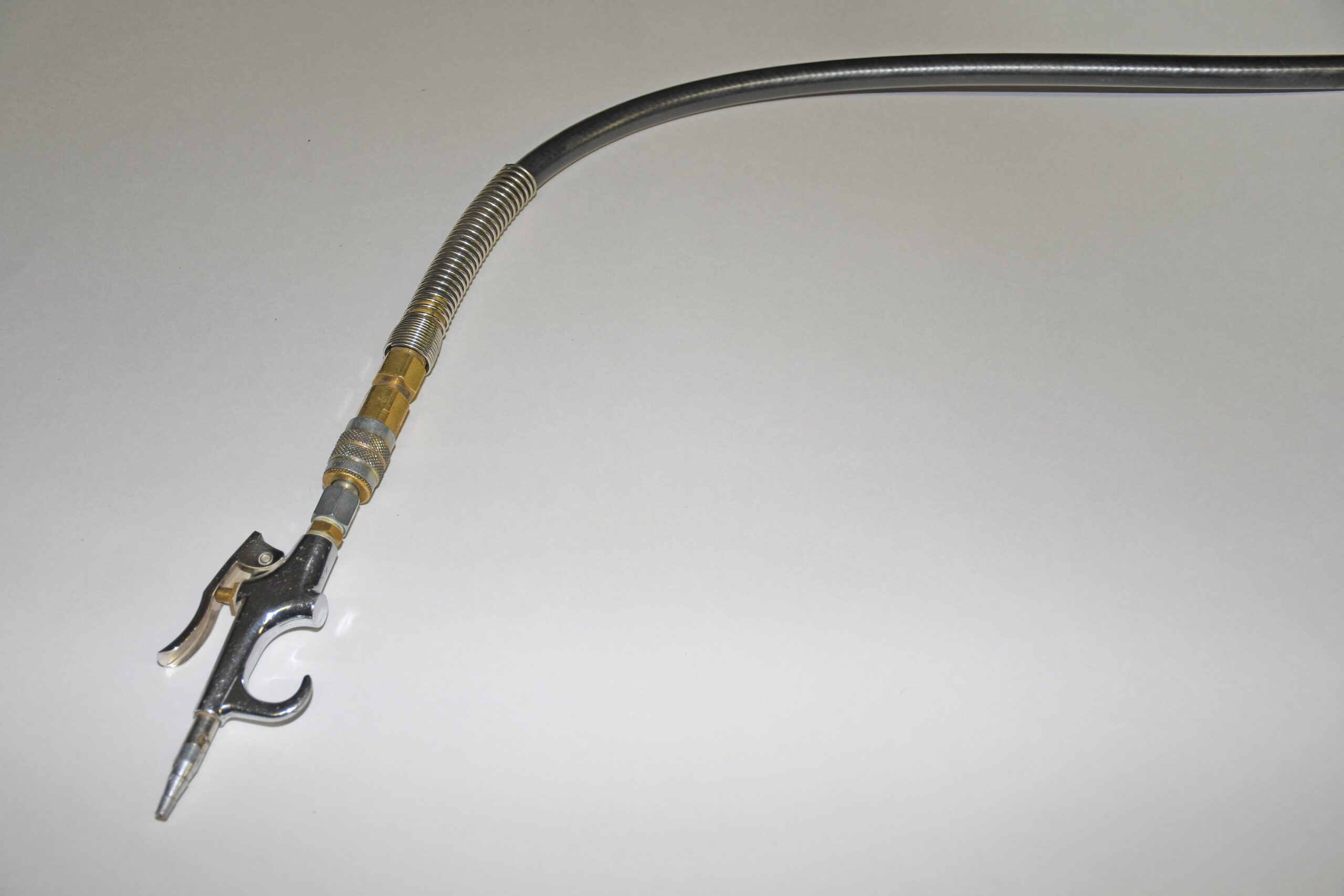 It’s a good idea to regularly inspect compressed air hoses prioer to use and always replace cracked, worn or frayed hose. When blowing dust and dirt from parts and the work area, reduce compressed air below 30-PSI. Alothough we all do it, you shouldn’t use compressed air to clean yourself or your clothes.