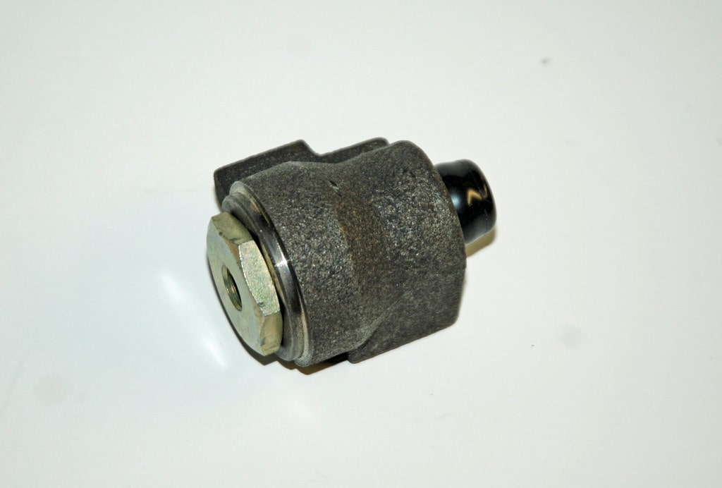 The disc brake “hold off” proportioning valve (or “metering valve”) included in the brake kit is identical to a stock GM number 3905525. Bendix manufactured these valves for GM, and they were used on a number of disc brake applications from 1967 up. These hold off valves are actually rebuildable; simply unscrew the large zinc dichromate nut on the end. Rebuild kits are available from several sources. It mounts on the driver side master cylinder stud by way of a correct design brake proportioning valve bracket (also included with the Heartbeat City brake kit). It is an exact fit for all models with front disc brakes and it comes gold zinc plated.