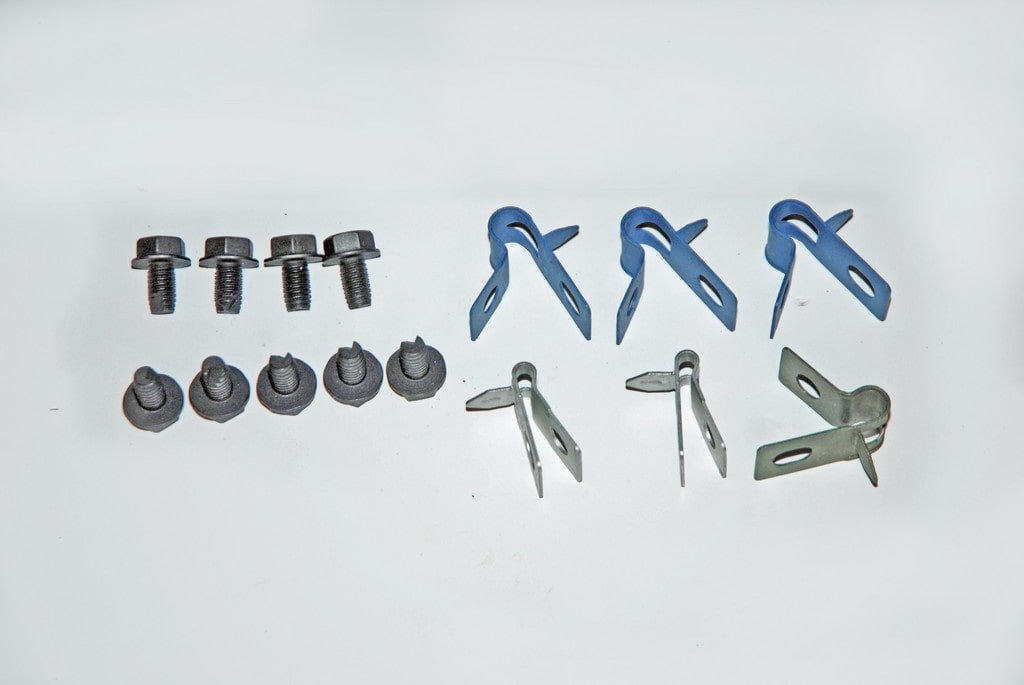 We’re not quite done yet. The kit is also supplied with a complete pre-bent front brake line kit, assembly line correct brake line clamps and retainers, the self tapping screws necessary to install the line clamps, brake line support brackets and even the rubber sleeves used to separate the hard line at the support brackets. Essentially, this kit provides for all new brake lines from the firewall forward.
