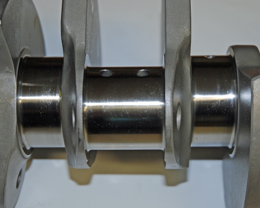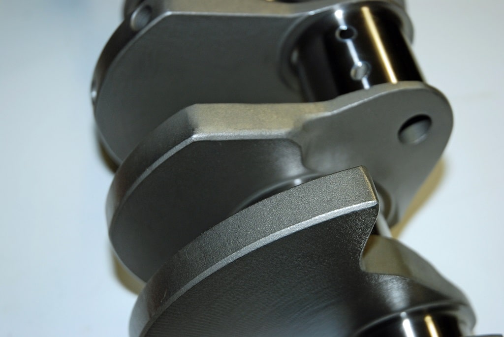 A billet crank starts out with a bar of material that, depending on the crank, often weighs about 275 pounds. Everything that does not look like a crank is machined away and turned into chips, leaving a crank that usually weighs 45-50 pounds. This is a very expensive and time consuming way to make a part. A forging, on the other hand, starts with a smaller diameter bar of steel that is heated and pressed into a part that looks more like a crank than the bar of material used to make a billet crank. This greatly reduces the amount of machining and reduces cost. We have all heard about grain flow and how it increases the strength of a part. A forging has grain flow that approximately follows the shape of the part, while a billet crank will have grain flow that runs straight from one end of the crank to the other. In this respect, a forging will be stronger than a billet. This is true as long as the part is not heat treated. If the heat treating of a 4340 part is done correctly, it will transform the grain structure into a very fine grain martensitic grain structure and the “grain flow” will be gone. This fine gran structure is ultimately stronger than the part with the grain flow.