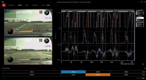 Once you are done racing, you can review the video with the telemetry overlay on your Corvette’s infotainment screen but you can also remove the SD card and put it in your computer where – with the help of the Cosworth Toolbox program – you can more closely analyze all of your track time. Also, with the microphone in the cabin, any driving instruction can be reviewed and studied after the session is over.