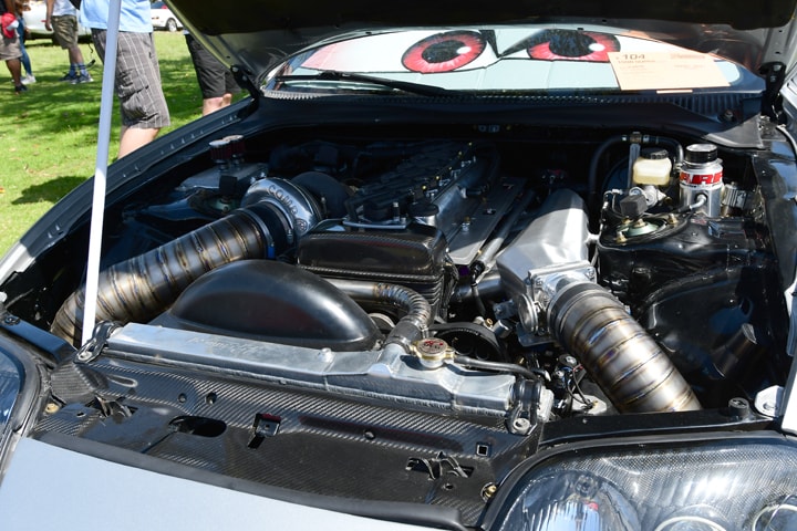 A crowd favorite was the 1972 black right-hand-drive Celica that looks docile at first sight. With its superb paint and polished chrome, it could be an everyday driver - until one pops the hood and sees the magic inside. This Celica is built for the quarter-mile and is expected to turn times in the nine-second bracket when it hits Northern California tracks later this summer. It, too, was towed to the event.