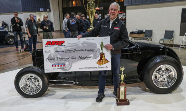 One of the oldest and most prestigious awards in the automotive world, the AMBR award is presented to a vehicle with exceptional originality, style, design and craftsmanship. It is open to all 1937-and-older U.S.-production-based roadsters, roadster pickups, Phaetons and touring cars. This year’s winner, a 1932 Ford Roadster owned and built by the President of Vintage Air, Jack Chisenhall, bested eight other contenders to take home the title’s $12,500 prize provided by Automotive Racing Products (ARP). It also became immortalized on the award’s nine-foot-tall perpetual trophy alongside a “who’s who” of hot rodding, including legendary builders like George Barris, Andy Brizio, Boyd Coddington, Troy Ladd and Chip Foose.