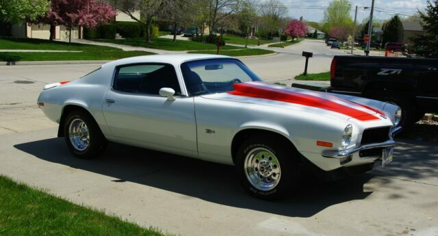 70 1/2 Chevy Camaro w/427 500 hp big block, turbo 400 trans w/kevlar plates, 3.73 posi rearend, black vinyl interior, steel cowl induction hood.