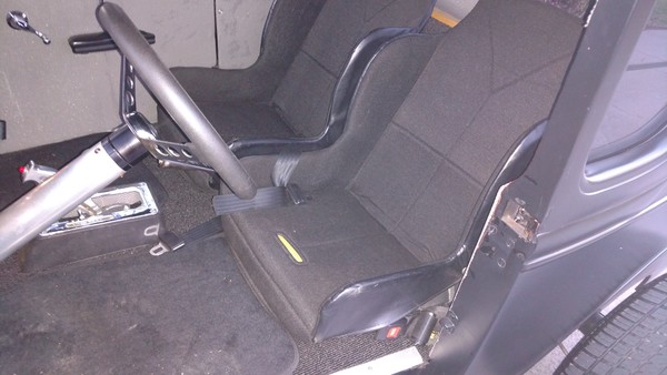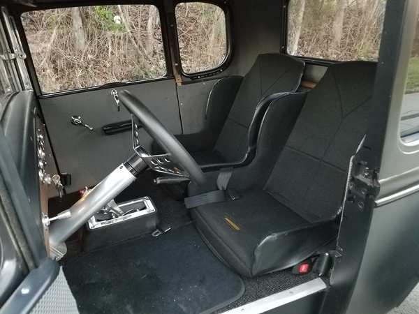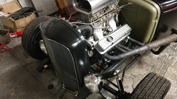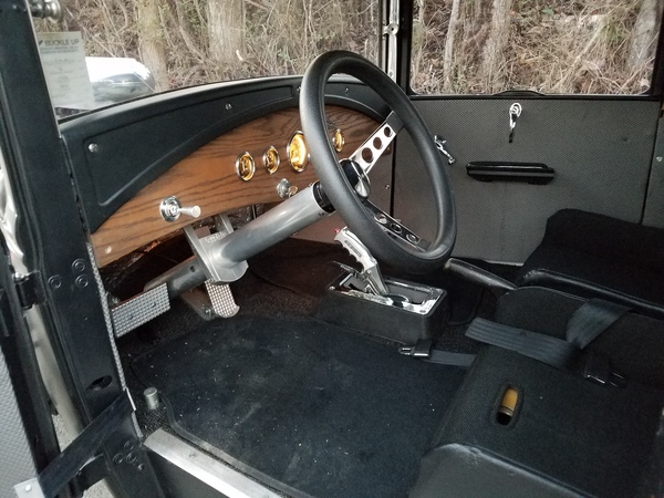 This little jewel can take you anywhere! Set up for track or street, this sweet Model A runs on a 355 Chevy engine with a 350 Turbo transmission. The brakes, tires and interior are all brand new, and the car drives beautifully. It's got a tunnel-ram intake with two 4s, a mild cam and an aluminum water pump and radiator. The paint scheme is simple but attractive. Check this one out - it's a real find!