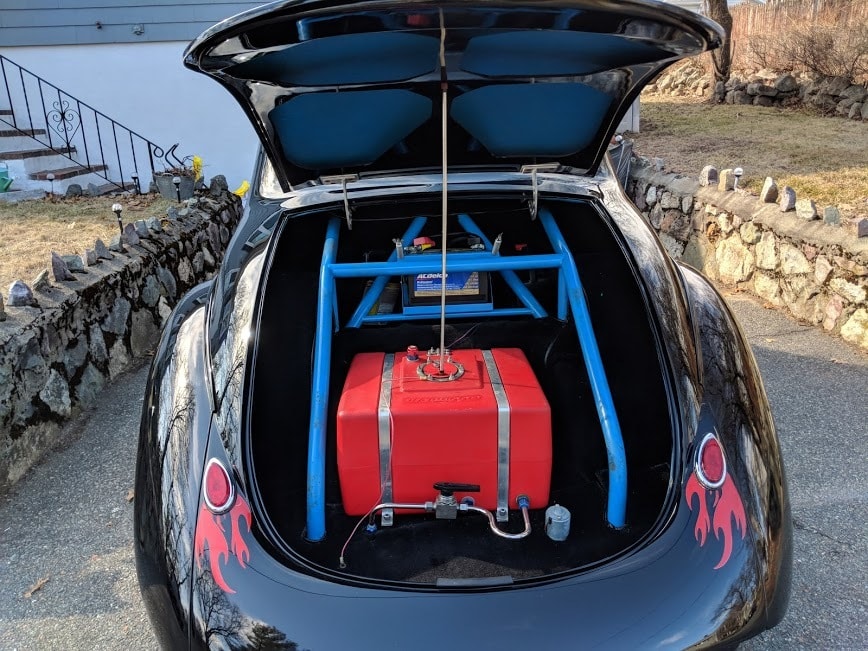 A round tube chassis and Pontiac rear form the bones of this cool pro street Willys! A 406 c.i. small block Chevy provides the propulsion, balanced by Wilwood rack and disc brakes. Coilovers all around add to the car's appeal, and a fine paint job with subtle decoration is the icing on the cake. Check it out!