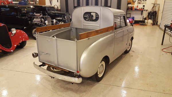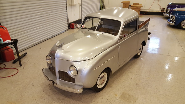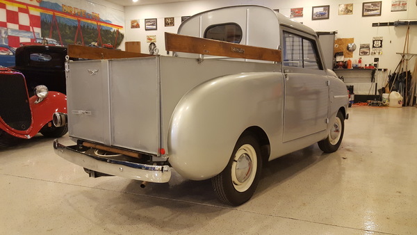 This rare round body pickup from '46 is one of just eight made that year! It's a sweet little ride that runs and drives nicely, with a standard shift appropriate to the era. It's got a 4-cylinder engine to keep things compact. The interior is in great repair, and the tires are new, so it's ready to go whenever you are. Give it a look!