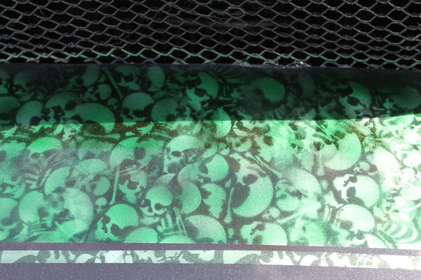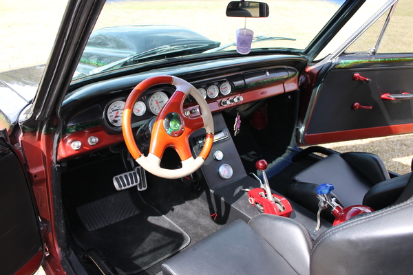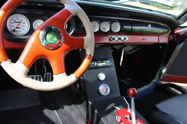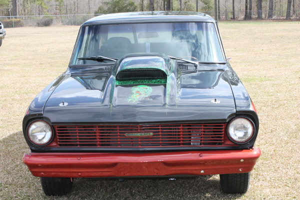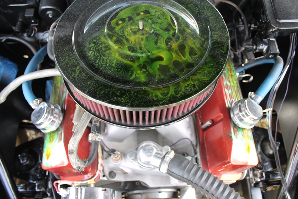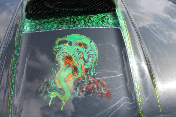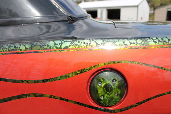 This eye-catching Chevy was built to be a good driver, but with plenty of power for when you feel like leaving the street behind in favor of the strip! A built 383 propels it along the track, accompanied by a Turbo 350 transmission. The fun paint scheme features neat skull motifs in iridescent green, paired with classic black and vibrant orange. This car also features a cool custom console with a stereo. Take a look!