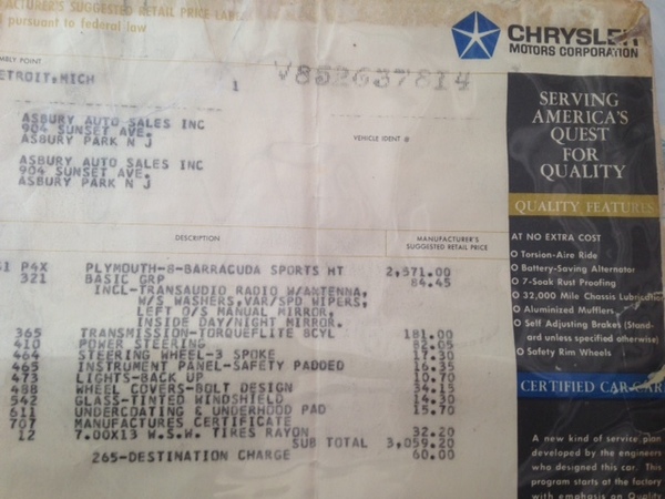 This sweet Plymouth sounds awesome and drives well! The seller has thoughtfully preserved the original build sheet, the owners manual and window sticker. With a 273 v8, along with new tires and wheels, dual exhaust and shocks, it's set up for some very fun cruising! Impressively enough, until 2016 it had only one owner. Take a look!