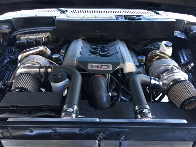 With a 5.0 Coyote twin turbo under the hood, this isn't your grandpa's farm truck - unless your grandpa likes tearing down the asphalt on weekends! It's street tuned on 93 with 7lbs boost, and carries all the good stuff: a GT short block, 150 heads, GT cams, Ford racing chains and more. It's already been prepared for paint, so you can personally ensure its looks match up to its impressive speed. Check it out!
