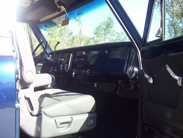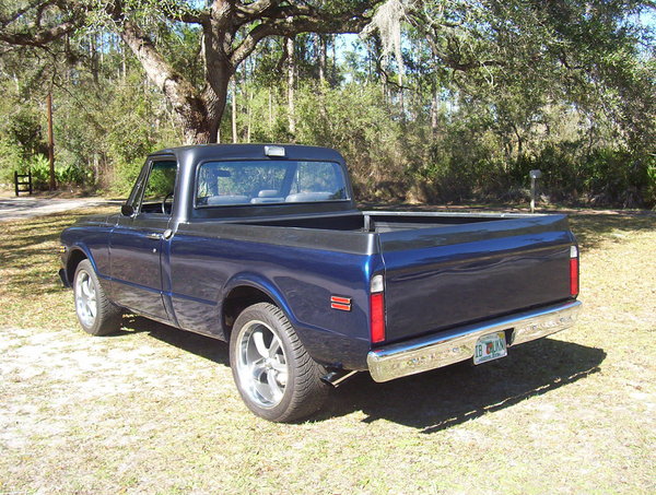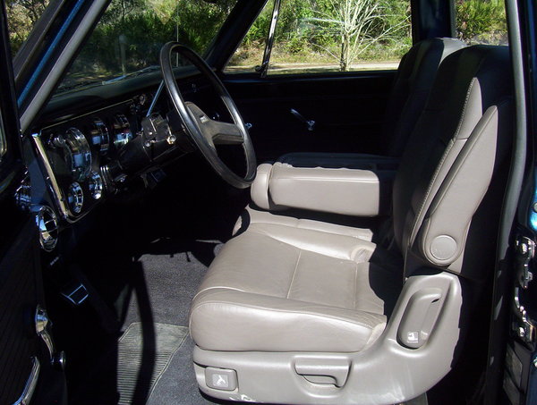 This truck is simply an undeniably nice vehicle! The engine is a solid, powerful GM 350 ci, with an Edelbrock 600 CFM carburetor and electric choke. The interior features gray leather bucket seats and new, electrically controlled air conditioning and heat. A Turbo-Hyradamatic 400 transmission joins the engine for great control. The tail and stop lights are reliable L.E.D.s. There's really no reason not to love this pickup!