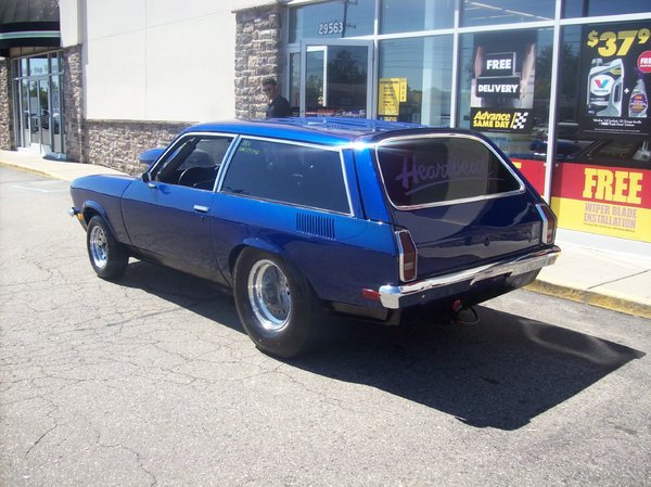 1972 built pro-street Vega wagon. Wagons are rare and hard to find. That's cheap. Worth more. This is an attention-getter. Built 350 Chevy. Fresh motor. Turbo 350 trans. Shift kit. Reverse manual valve body. 3500 converter. 12 bolt rear. 4:88 gear. Tubbed and caged. 33x19.5x15 rear tires. 15x14 centerline wheels. Fuel cell, dual batteries. Winters shifter. Harwood scoop. Lightweight bucket seats. Aluminum radiator. MSD ignition. FST carb. New paint. Much more. Runs excellent. If seriously interested, please send your phone number. Serious buyers only. If you're from out of state and a distance away or another country, make sure you have your American money set up and ready to go, and a shipper or a way to get it home. Serious ready-to-buy buyers only.