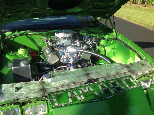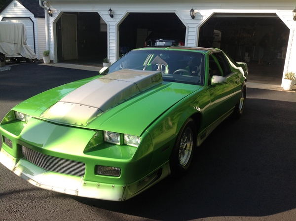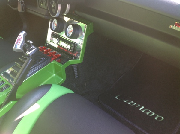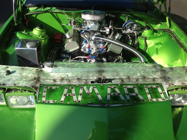 This flashy Camaro is as impressive on the inside as it looks from the outside! A small block Chevy 383 powers it down the asphalt, while American alloy axles and Richmond 4:10 gears supply structural integrity at any speed. A Demon 750cfm carburetor with annular boosters mixes things up at a furious pace. The ivy green metallic and soft grey air brushed rivet paint scheme benefits from over 350 rivets distributed over the build. Take a look!
