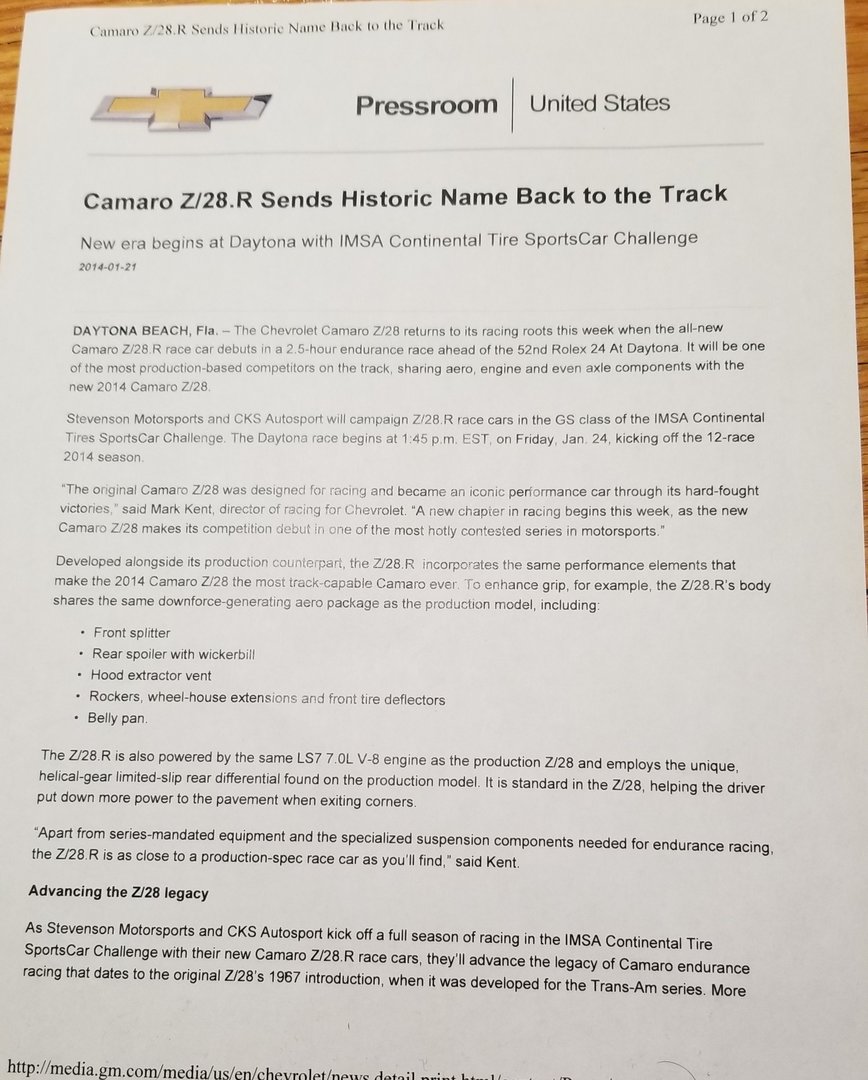 Before you is a 1 of 4 factory built and factory supported Chevrolet/Pratt & Miller Camaro Z/28.R race car. If you are a fan of Road Racing you know this car.