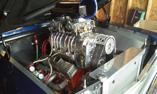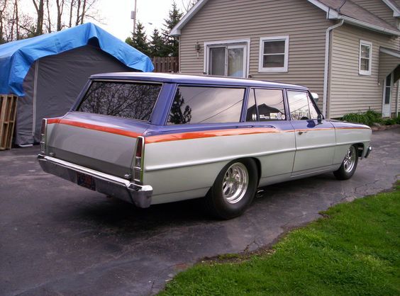 This '66 Chevy has plenty of pro street punch! A 355 Chevy small block with an 871 blower powers it down the street or strip. The built 350 transmission features a manual reverse shift pattern valve body. The rear end is a Dana 60 with coilovers and ladder bars. With a 6 point roll cage and 5 point seat belts, you can drive this gorgeous Wagon safe and speedy wherever you want!