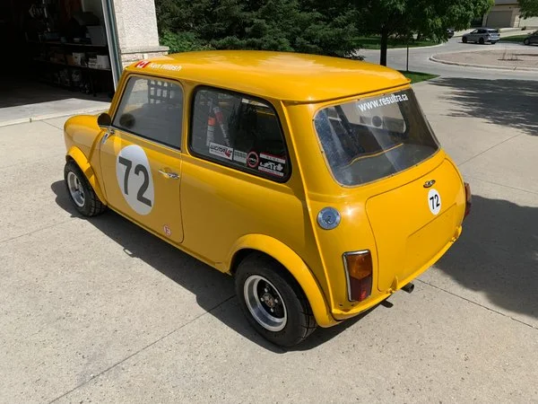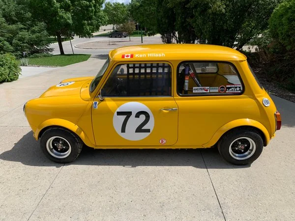 2014 Race Engine UpgradeIn 2014 the Mini was purchased and moved to Winnipeg, Manitoba, Canada where it was fitted with a 1275cc based race engine (over-bored to 0.040” for 1310cc) prepared by Classic Motor Works of St. Andrews, Manitoba, Canada (see pictures for details).The twin SU carbs were rebuilt and modified by Retro Minis of Lancashire, U.K. to the David Vizard standards (“the Yellow Book”, pages 115 to 122, Tuning the A-Series Engine, Third Edition, by David Vizard) (see pictures for details).This Mini weighs approximately 1,350 lbs and the horsepower of the 1310cc race engine was not known but estimated to be “somewhere north of 100”.For five years (current logbook included with car), from 2014 to 2018, the car was raced by owner Ken Hilash and pit crewed by Hilash Brothers’ Black Hands Racing Vintage Motorsports of Winnipeg, Canada at:• the Gimli Motorsports Park in Gimli, Manitoba, Canada with the WSCC (Winnipeg Sports Car Club) under WCMA/ASN Canada FIA sanctioning• the Brainerd International Raceway in Brainerd, Minnesota, U.S.A. with the SCCA (Sports Car Club of America) Land O’Lakes Region / VSCR (Vintage Sports Car Racing)• Road America, Elkhart Lake, Wisconsin, U.S.A. with the VSCDA (Vintage Sports Car Drivers Association)