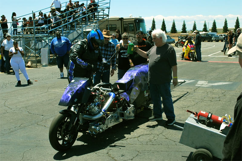 The same logic may apply to professional Blown Top Fuel drag racers running +300 MPH. Looking at the professional normally aspirated A-Fuel drag racers running 280 MPH, a similar comparison could be made. That would be to examine the reduction or removal of the blower. That would allow higher compression ratio. All of that would be to reduce the burden from the nitrogen from the air.