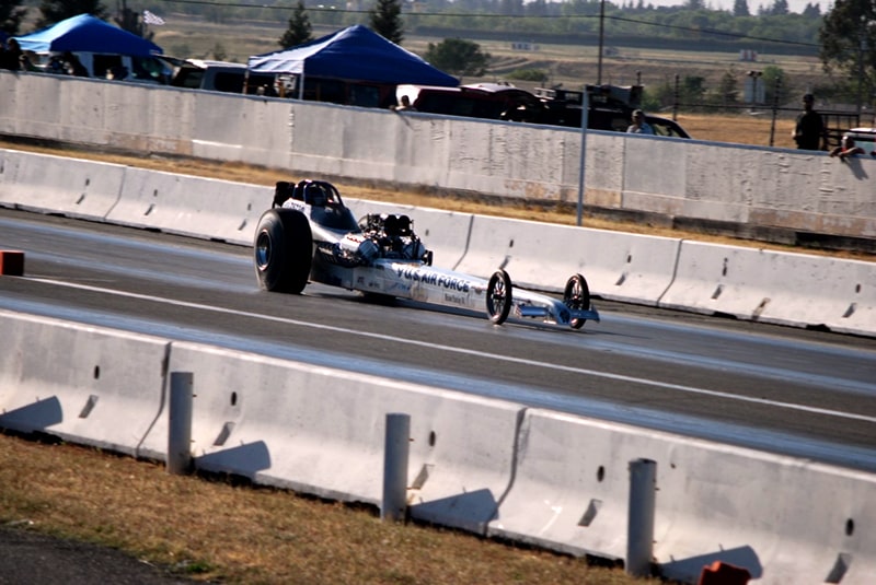 The Nostalgia Nitro A-Fuel racecars are running 5.9 quarter mile racing ETs at 230 MPH. In comparison, the Nostalgia Nitro Blown Top Fuel racecars are running 5.60 quarter mile racing ETs at 250 miles an hour, not that much quicker for all the extra engine provisions.