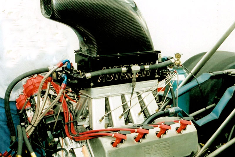 In the Nostalgia Nitro Blown Top Fuel engine, the blower takes about 400 horsepower from the engine just to drive the blower. You can literally consider that about 300 of that horsepower is doing nothing but compressing nitrogen from the air. It’s not contributing to making power. So significant power is consumed driving the blower to compress nitrogen from the air, which is an anchor. It is always hanging around, subtracting from the net power output.