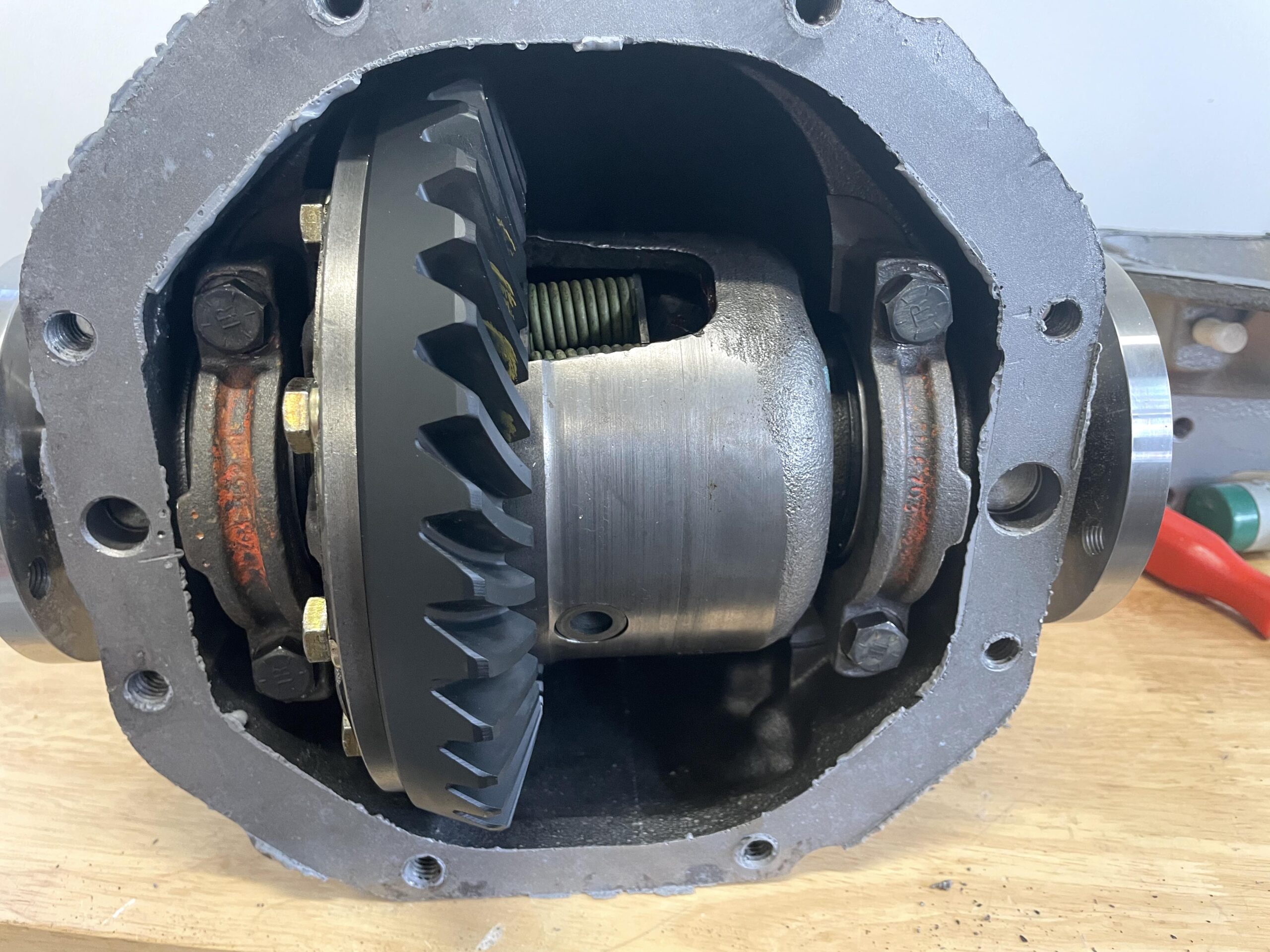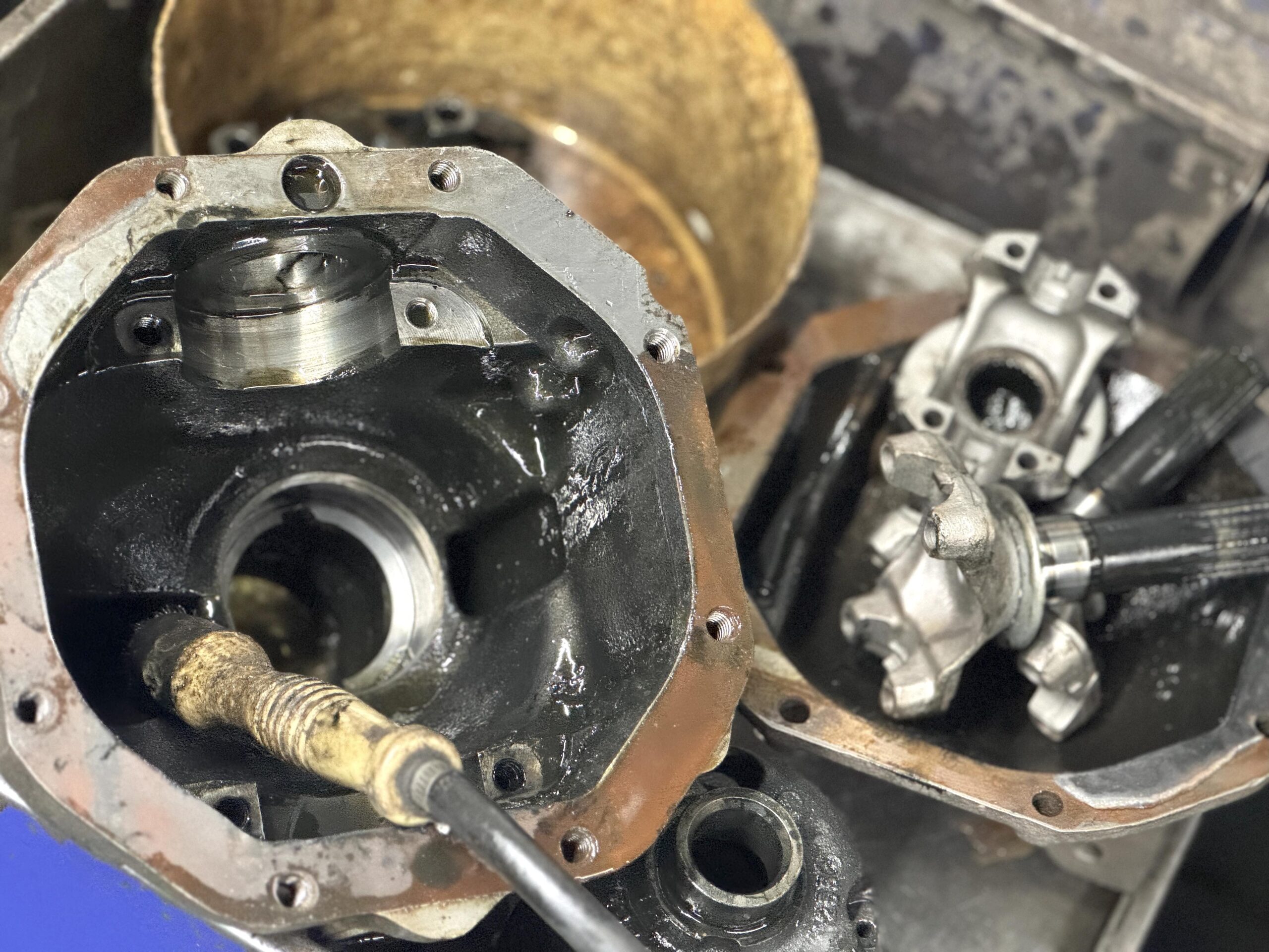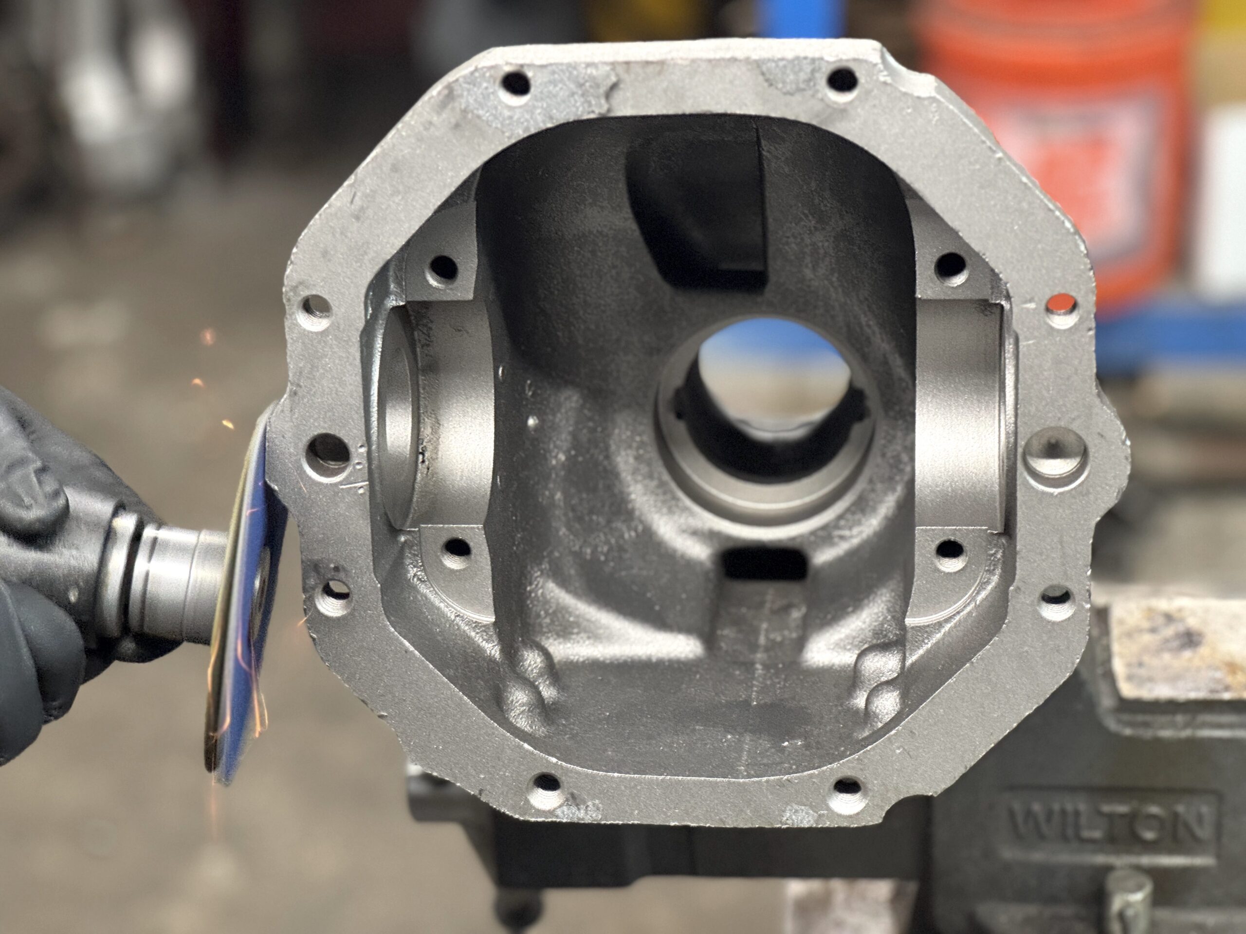 When left you in the last article in the series, we showed how Van Steel (website: www.vansteel.com) stripped the C3 Corvette rear end center section, in preparation for blueprinting along with the install of 30-spline stub axles (Chevy calls them “Side Gear Yokes”). The original stub axles are smaller in overall diameter and make use of 17 splines. Disassembly was pretty much a text book example of how it’s done. Van Steel does, however have some in-house processes that save some time and effort. This time around we’ll look at the extensive clean up and we’ll also look at the machining modifications necessary to install those big flange style stub axles. Here goes: Cleanup of the center section (as well as the positraction assembly) is extensive. These things are often well over fifty years old. Some have never been apart. The first step is a bath in a solvent tank. Next, various pieces are media blasted. The positraction has to be stripped for modifications. And that means the side bearings have to come out. They can be pulled, but Van Steel typically cuts them off using a die grinder and cut off wheel. It’s faster and easier. The new stub axles Van Steel uses (made-in-the-USA) are built with a flange, much the same as the trailing arm side of the rear end. Because of this, two ears on the side of the center section must be removed. There’s a couple of ways to accomplish this, but a small grinding disc on a die grinder makes short work of the job. The housing is cleaned, deburred and detailed. Meanwhile, the empty positraction case must also be modified to accept the much larger 30-spline stub axles. It’s a two-step process (on each side) at a machine shop. But first, the ring gear, carrier bearings, plates, springs and finally clutches must be removed. The bare posi is cleaned and is then chucked in a lathe and centered, using a dial indicator to ensure it is running true prior to any machining operations. Van Steel points out the standard inside diameter of the posi case is approximately 1.247-inches. This must be opened to a diameter of 1.295-inches for the new larger diameter axles, followed by a step cut. The step cut is 0.325-inches deep. Van Steel removing metal at 0.020-inch increments until 0.100-inch of material has been removed. What this means is the positraction case will have a bore size of 1.295-inches and an 0.325-inch step on the outside with a bore size of 1.395-inches. This allows the new side yokes to be pushed in far enough in order to install a set of 12-bolt c-clips during assembly. The final process is to sand or file (deburr) the hard edges from the machining process, followed by another complete cleaning of the posi case. Next up, the positraction unit is assembled, using new friction materials. From there on, the process involves installing the posi along with the setup of the new ring and pinion. Its all pretty standard rear end setup and this point, so we’ll leave it at that. For a closer look, check out the accompanying photos and captions. There’s more to it than you might first think: