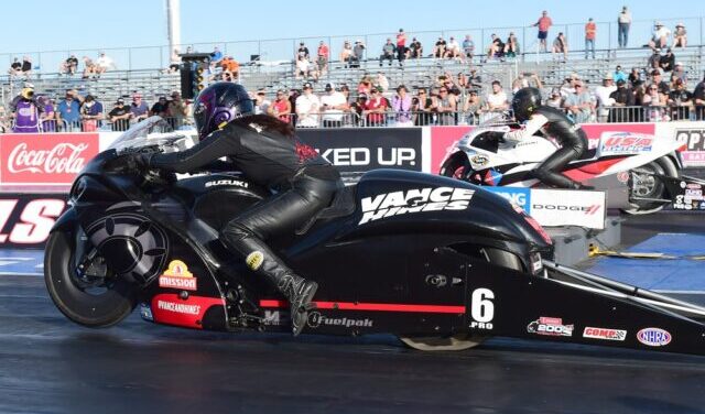 “Suzuki has a tradition of competing at the highest levels in motorcycle racing,” noted Kerry Graeber, Suzuki Motor USA, LLC vice president of motorcycle/ATV sales and marketing. “Given our history and success in drag racing, it’s fitting that we take a high-profile role in NHRA PSM. One of the specific goals of this program is to showcase Suzuki’s all-new, third-generation Hayabusa sport bike. Vance & Hines is, without a doubt, the best partner for this initiative and we’re thrilled to be reuniting with V&H in NHRA to show the extraordinary capabilities of the Hayabusa.”
