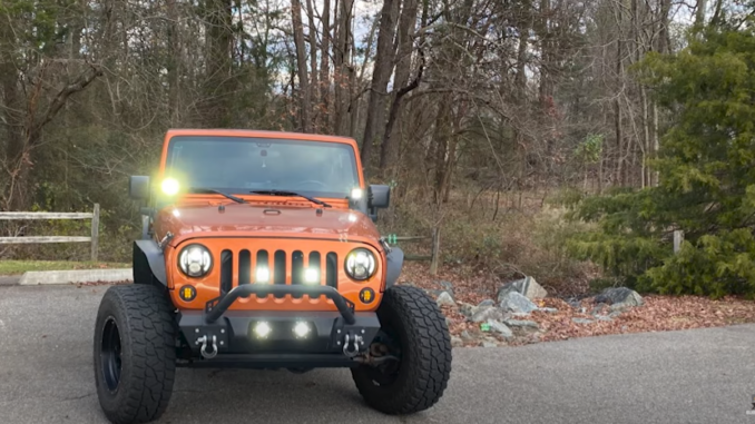 This 2010 JK is used as a daily driver, for camping, and off-road adventures. It’s been given a stripped-down, classic look to reflect the personality of its owner. At least 40 different modifications were made, with several more on the way. Highlights of this Wrangler build include tube doors, a steel bumper with lights from DV8, a Teleflex leveling kit, Rugged Ridge rocker guards, several lighting upgrades, and more.