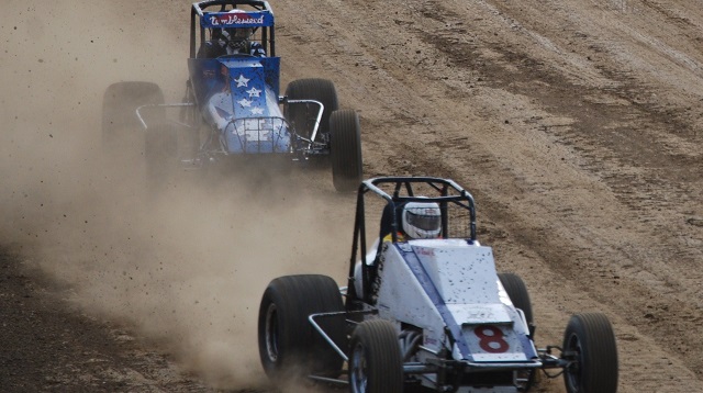 The Vintage Torque Fest (www.vintagetorquefest.com) traditional hot rod show in Dubuque, Iowa featured racing on the Dubuque Fairgrounds oval dirt track on May 1 and May 2. Racing events included motorcycle, open wheel and jalopy stock racing, as well as “chain races” with two cars chained together. Hot rodders were permitted track time if they didn’t mind getting their cars a little dirty.