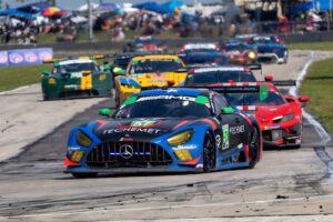 The battle between all Grand Touring Prototype (GTP) entries was fierce and it came down to a faked pass by Deletraz on the outside of Sebring’s hairpin corner that enabled him to make a late dive inside Bourdais. The four-time INDYCAR champion attempted a crossover move exiting the next straightaway, but Deletraz made his way and stayed ahead through the next grouping of turns. Sure, they made some light contact, but Deletraz kept his lead through the final four laps of Sebring’s 3.74-mile, 17-corner bumps to earn the win from third on the 58-car grid.