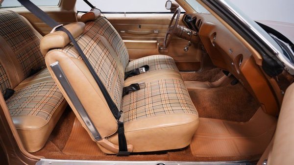 Step inside to find an interior that balances comfort and classic styling. The upholstery is in excellent condition, free from any rips or tears, complemented by a well-maintained vinyl interior and a headliner in great shape. The dash and gauges maintain their clarity and functionality, while the door panels and rear deck area present with remarkable preservation. This cabin invites you to enjoy every mile with a timeless, well-kept ambiance.