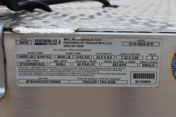 FEATHERLITE 3110 BP 3110 Aluminum Full Width 7k Torsion Axls - $17,995