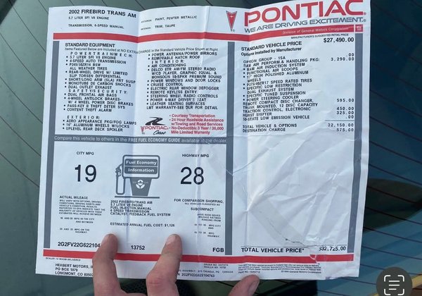 2002 Pontiac Firebird - $27,500