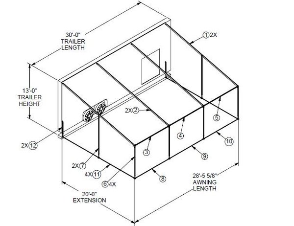 Over $14K new used once - similar to the one pictured except solid black and different dimensions. Check the dimensions (30x20)on the drawing. Made for a stacker trailer. All parts are present except for the edge metal that is fastened to the trailer. $200 in material to get new. Do your home work on the ease of use that comes with a brilliant design such as the "Ultimate Awning". Msg with questions.